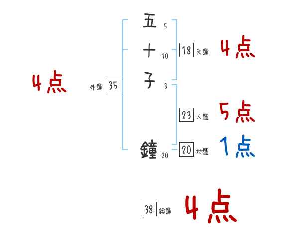 五十子鐘さんの画数の鑑定結果