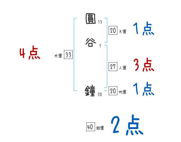 圓谷鐘さんの画数の鑑定結果