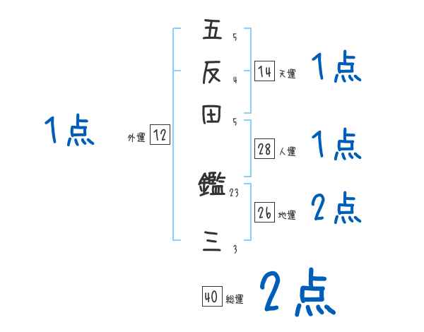 地運![]() | 五反田鑑三さんの地運は26画の2つ星!波瀾万丈かも。信頼できる人を大事にしましょう。 個性を表す基礎的な運勢です。性格形成や対人関係、行動力など家庭環境に影響されます。主に誕生してから20歳くらいまでの若年期の運勢を表します。 |