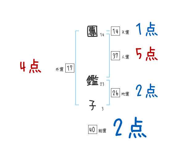 團鑑子さんの画数の鑑定結果