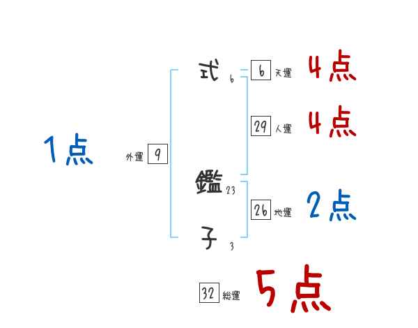 式鑑子さんの画数の鑑定結果