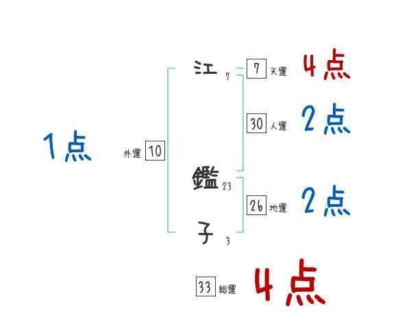 天運![]() | 江鑑子さんの天運は7画の4つ星!強い意志や信念を持ち独立心が強い。自立する。 家系が持つ宿命的な運勢を表します。祖先から受け継いだ苗字ですので自分の力が及びません。家柄を象徴します。 |