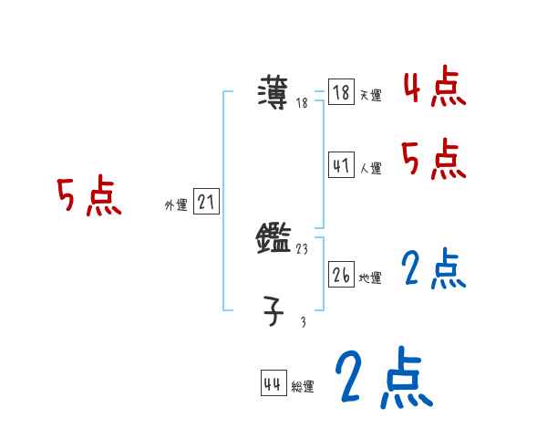 薄鑑子さんの画数の鑑定結果