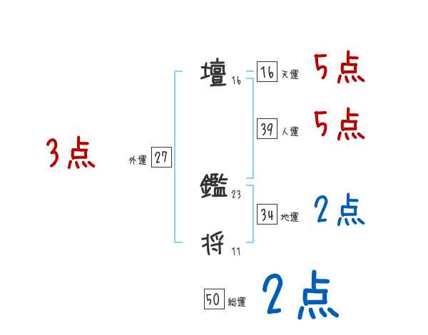 壇鑑将さんの外運は27画の3つ星