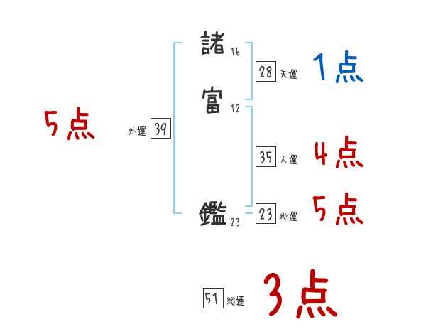 諸富鑑さんの画数の鑑定結果
