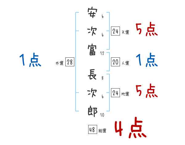安次富長次郎さんの画数の鑑定結果