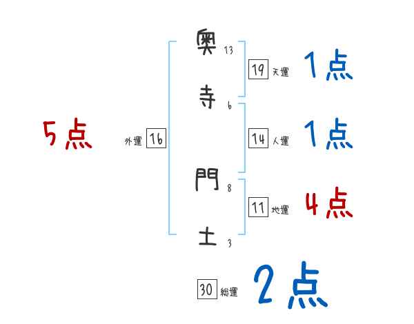 奥寺門土さんの画数の鑑定結果