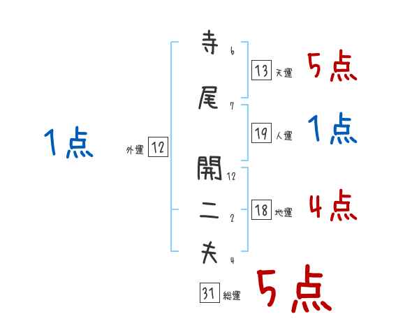 寺尾開二夫さんの画数の鑑定結果