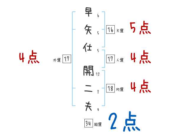 外運![]() | 早矢仕開二夫さんの外運は17画の4つ星!積極的な行動力。地位を気づき財産を手に入れる。純粋な心と直感力。 生活面を象徴する運勢です。外部から受ける影響力を表し、結婚運、家庭運や職場、環境への順応性を表します。 |