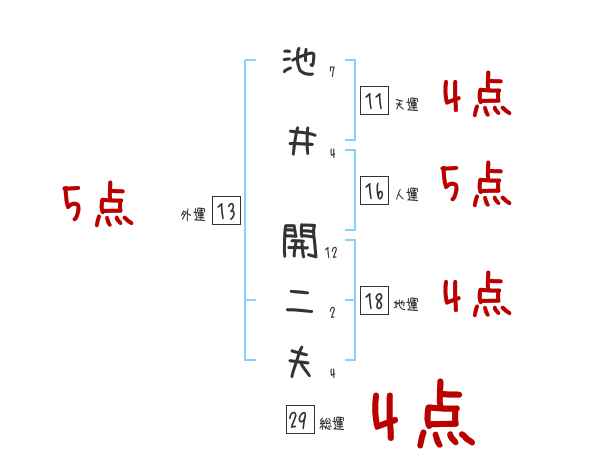 池井開二夫さんの画数の鑑定結果