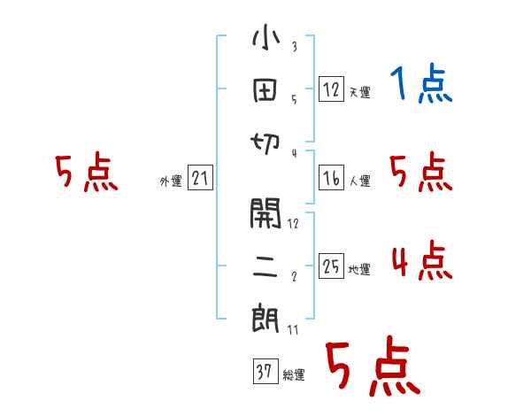 小田切開二朗さんの画数の鑑定結果