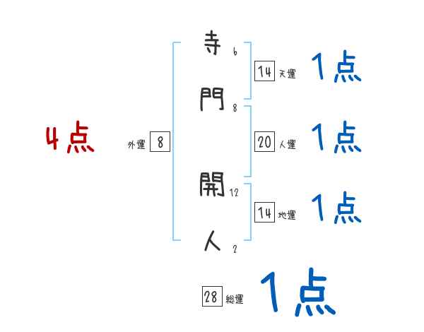 寺門開人さんの画数の鑑定結果