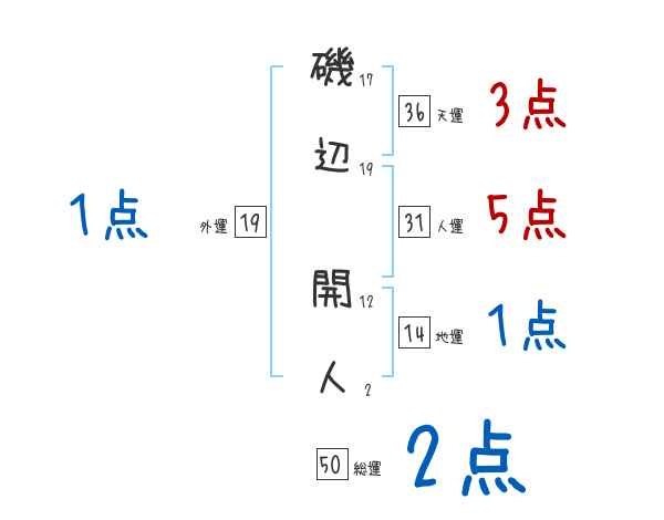 磯辺開人さんの画数の鑑定結果