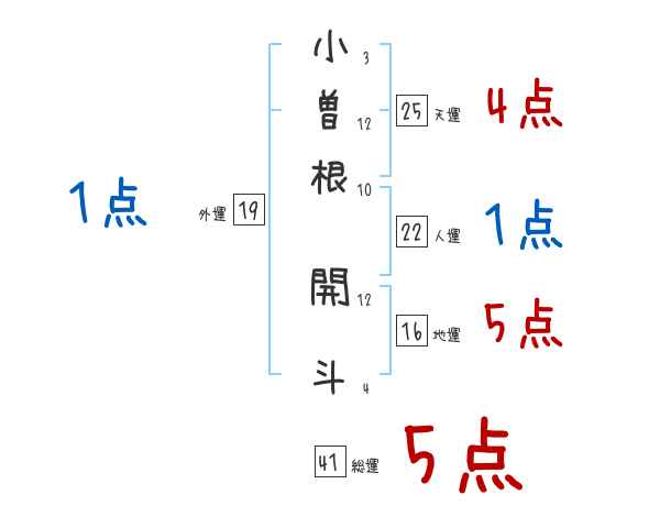 小曽根開斗さんの画数の鑑定結果