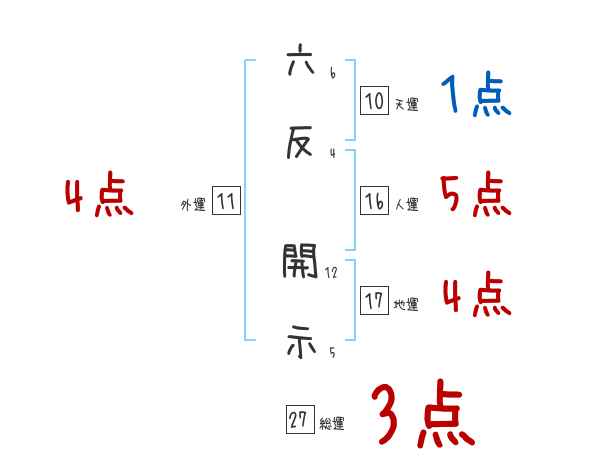 六反開示さんの画数の鑑定結果