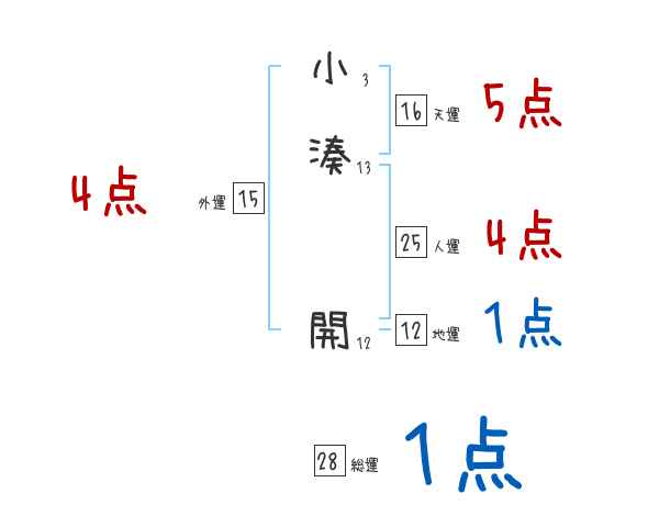 小湊開さんの画数の鑑定結果