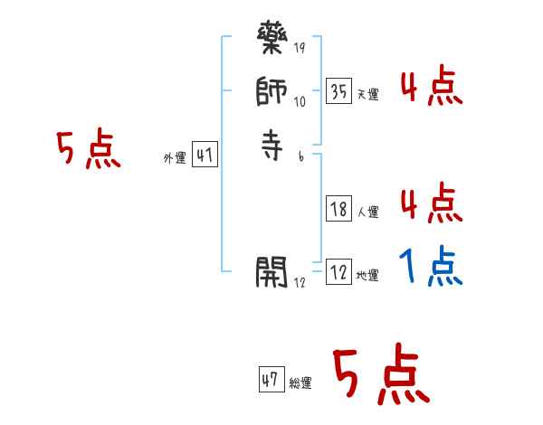 藥師寺開さんの画数の鑑定結果