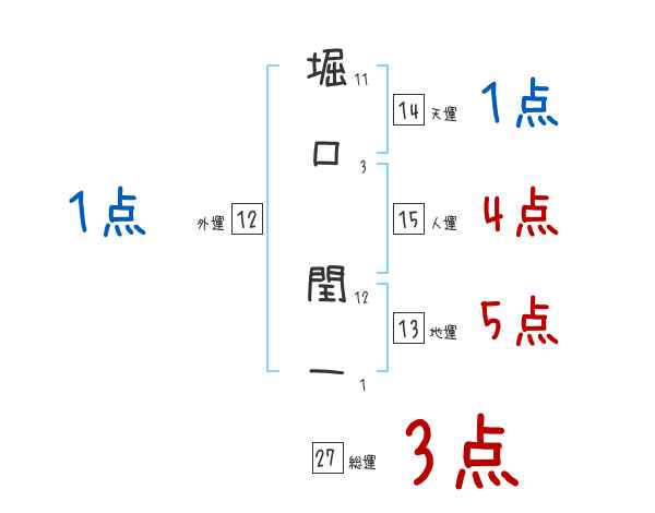 堀口閏一さんの画数の鑑定結果