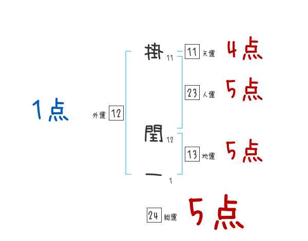 天運![]() | 掛閏一さんの天運は11画の4つ星!着実に富や地位を得る幸運な人生。 家系が持つ宿命的な運勢を表します。祖先から受け継いだ苗字ですので自分の力が及びません。家柄を象徴します。 |