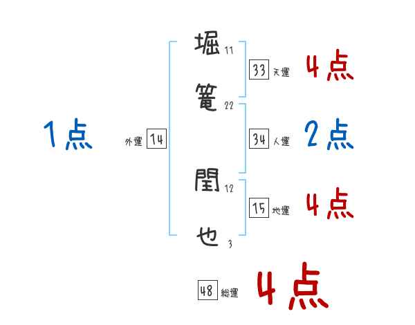 堀篭閏也さんの画数の鑑定結果