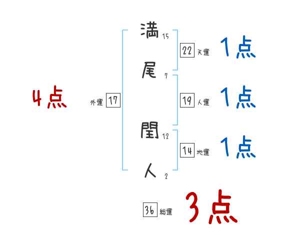 満尾閏人さんの画数の鑑定結果