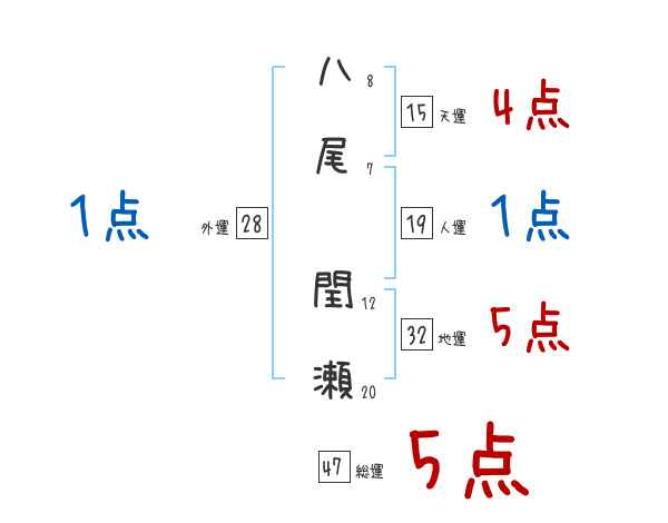 八尾閏瀬さんの画数の鑑定結果