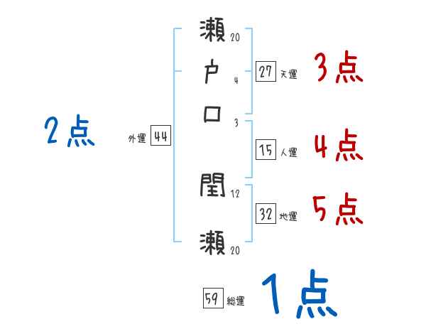 瀬戸口閏瀬さんの総運は59画の1つ星