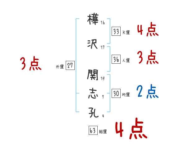 樺沢関志孔さんの画数の鑑定結果