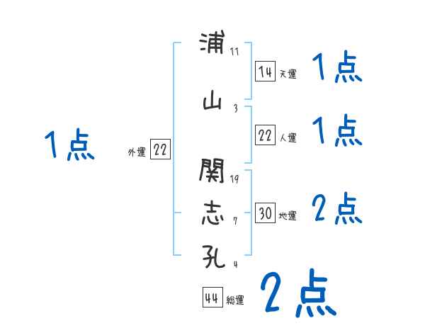 人運![]() | 浦山関志孔さんの人運は22画の1つ星!努力することが苦手ないっぽう手先が器用。芸術性にも優れる。 性格や才能などを表す2番目に重要な運勢です。人間関係や協調性、社会的な成功に影響します。主に20歳から50歳ぐらいまでの中年期の運勢を表します。 |
