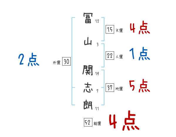 外運![]() | 冨山関志朗さんの外運は30画の2つ星!浮き沈みの激しさに注意しましょう。 生活面を象徴する運勢です。外部から受ける影響力を表し、結婚運、家庭運や職場、環境への順応性を表します。 |