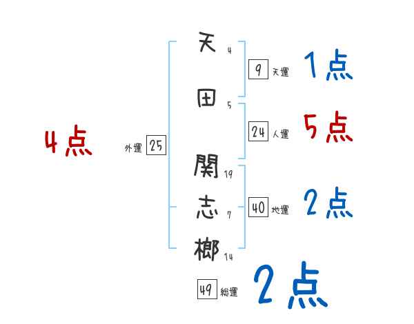天田関志榔さんの画数の鑑定結果