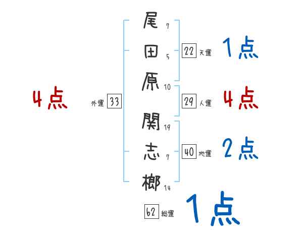 尾田原関志榔さんの画数の鑑定結果