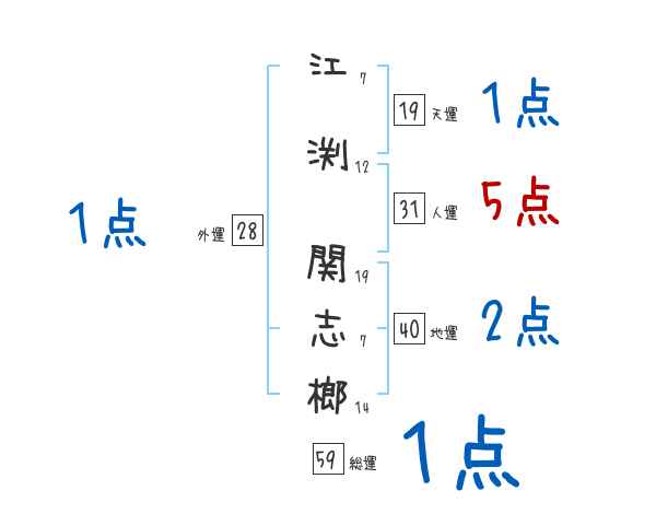 江渕関志榔さんの画数の鑑定結果
