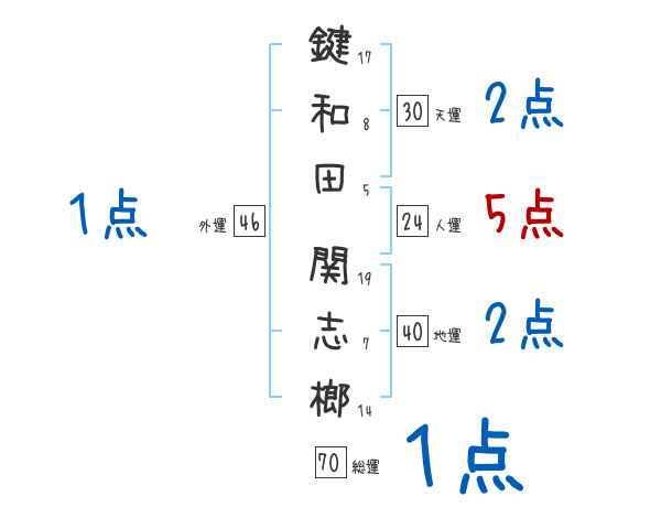 鍵和田関志榔さんの画数の鑑定結果