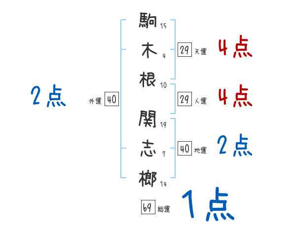 駒木根関志榔さんの画数の鑑定結果