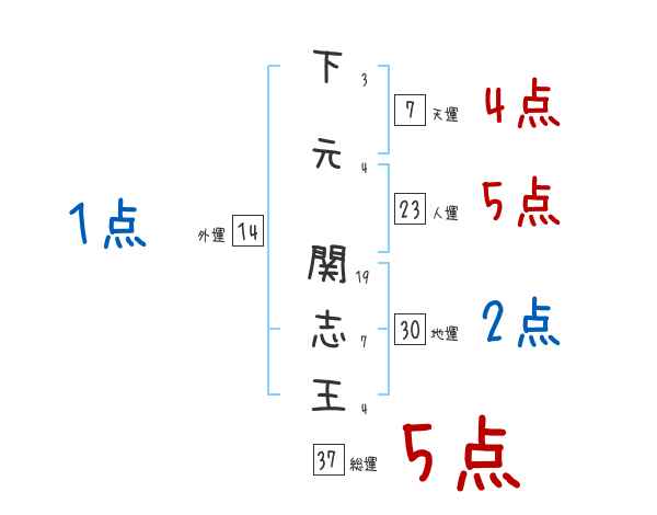 総運![]() | 下元関志王さんの総運は37画の5つ星!努力家で順応性に優れる。現実的な考え方ができ忠実に物事をこなす。 あなたの人生を表す1番重要な運勢です。生涯を通じて影響する総合運となり、主に50歳以降の晩年期に影響を及ぼします。 |