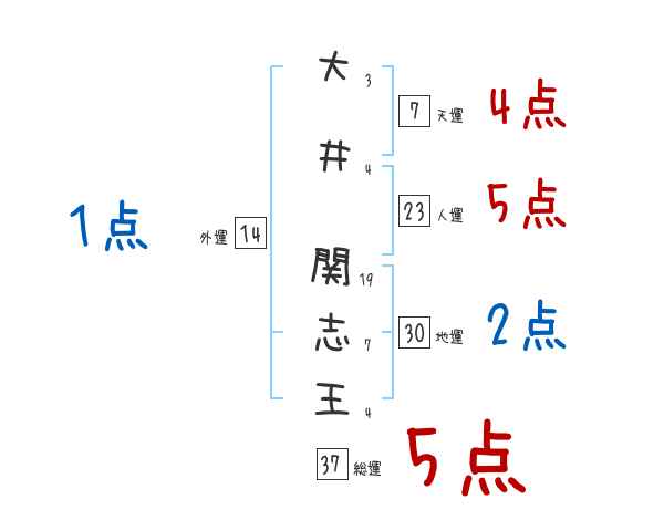 大井関志王さんの画数の鑑定結果