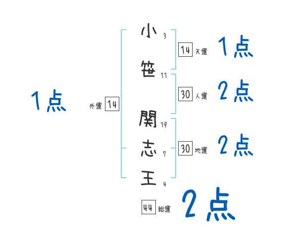 小笹関志王さんの画数の鑑定結果