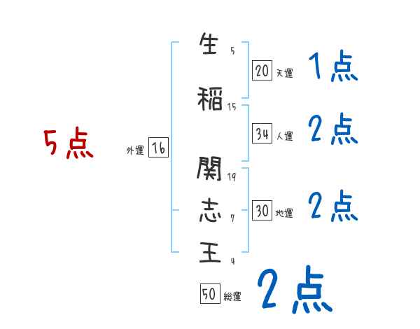 生稲関志王さんの画数の鑑定結果