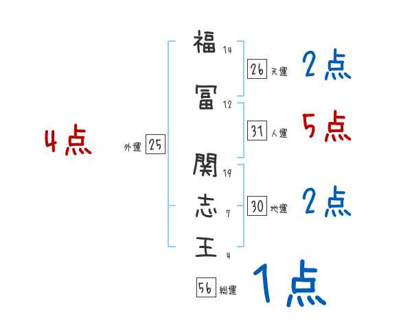 福冨関志王さんの画数の鑑定結果