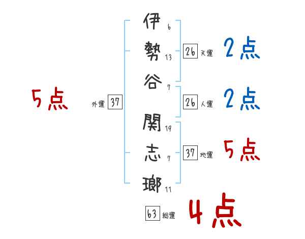 伊勢谷関志瑯さんの外運は37画の5つ星