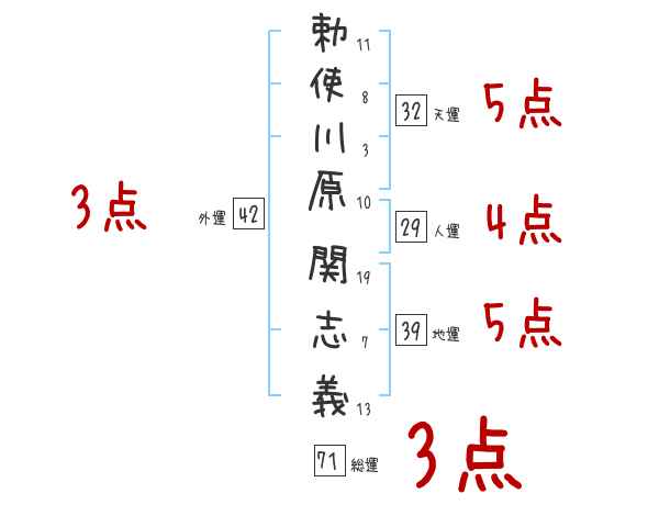 家系が持つ宿命的な運勢を表します。祖先から受け継いだ苗字ですので自分の力が及びません。家柄を象徴します。