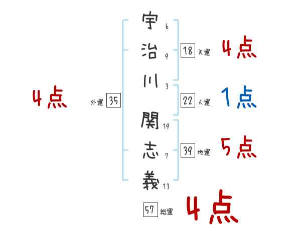 宇治川関志義さんの画数の鑑定結果