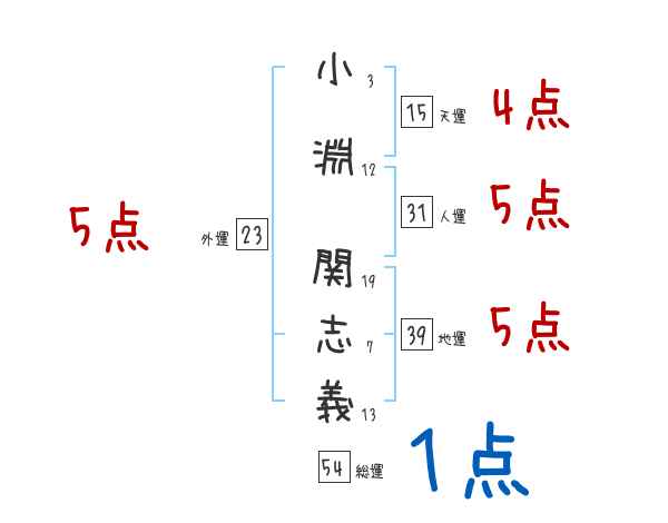 外運![]() | 小淵関志義さんの外運は23画の5つ星!想像力に優れ活力がある。一代で成功し名誉を手に入れる。 生活面を象徴する運勢です。外部から受ける影響力を表し、結婚運、家庭運や職場、環境への順応性を表します。 |