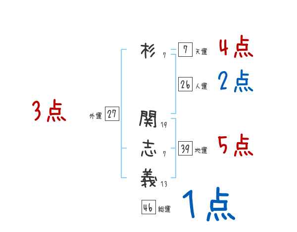 杉関志義さんの画数の鑑定結果
