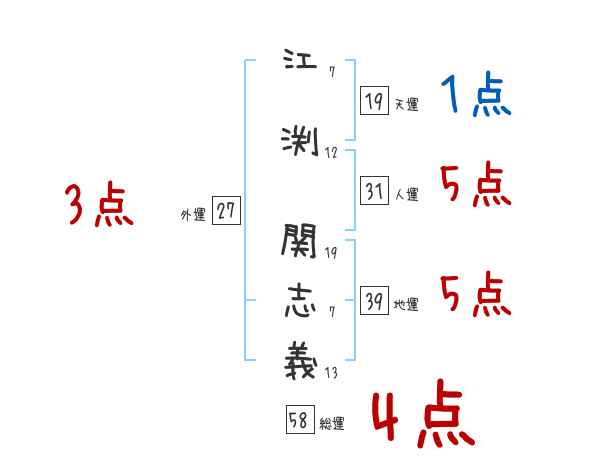 江渕関志義さんの画数の鑑定結果