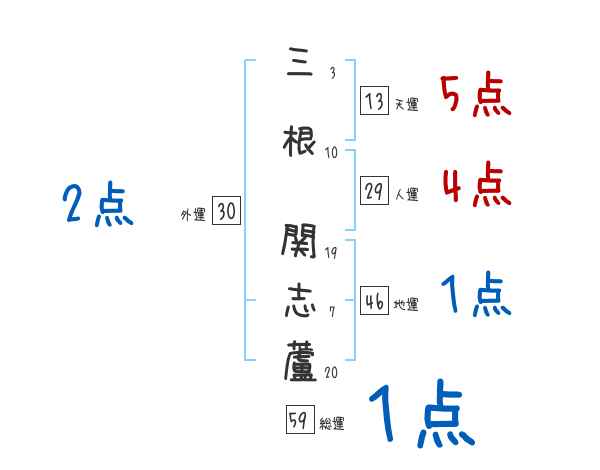 三根関志蘆さんの画数の鑑定結果