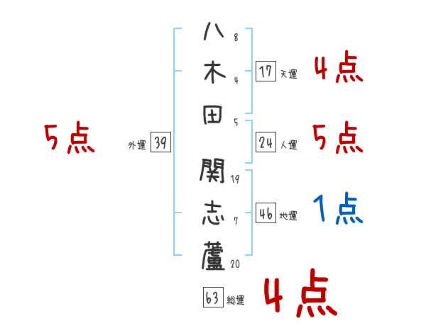 八木田関志蘆さんの画数の鑑定結果