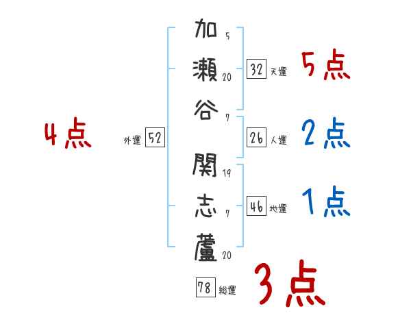 加瀬谷関志蘆さんの画数の鑑定結果