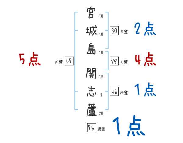 宮城島関志蘆さんの画数の鑑定結果